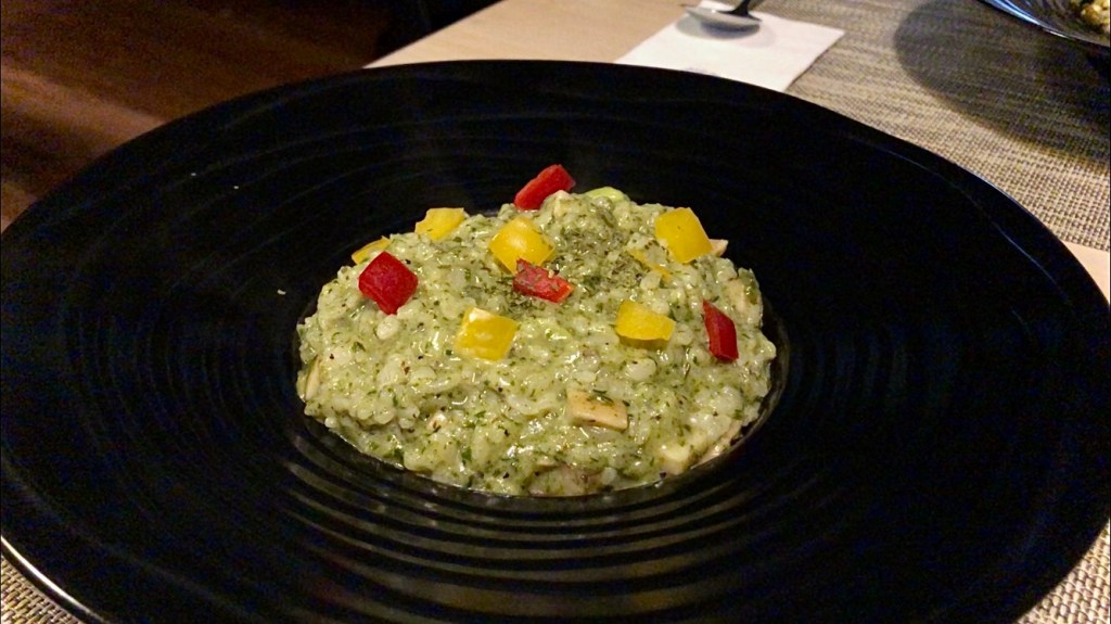緊接著是維也納青醬燉飯。我吃過義大利的risotto,西班牙的paella,但這是我第一次吃維也納燉飯。在好奇之下選了它,而它也沒有辜負我的期待(老實說,因為不知道他是什麼所以其實沒有特別期望的口味哈哈)整體來說,飯粒比較偏向義式的燉飯。裡面加了一種很像是素火腿的配料,我覺得很特別跟我印象中的素食假肉不一樣(也有可能是因為我實在是太孤陋寡聞了🤣)。